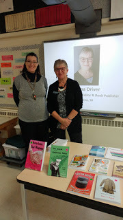 Mrs. Jantz with author-publisher Deana Driver at Viscount Central School- “What is your favourite book that you’ve written?” (I like all of them for different reasons. They’re all like my babies and you should never choose a favourite baby, but I guess I'll choose
