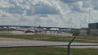 Near the end of the show, as we headed back to the vehicle to avoid the claustrophobia of walking in a big crowd, I snapped this photo of the RCAF Snowbirds crew heading to their planes to begin their act. I've interviewed a couple of the Snowbirds personnel for Volume 1 of my book, so now I'm even more interested in their work than before.