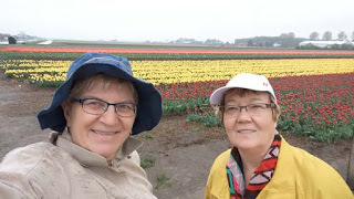 No, there is no toilet in this photo. It's just a photo of us during one of the best moments of our trip. We loved the tulip fields in the Netherlands.