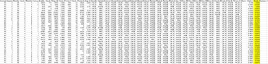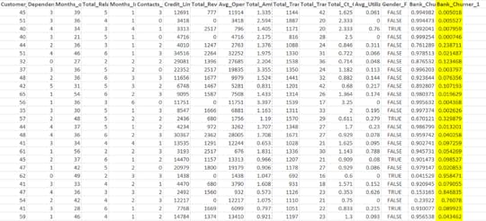To insert the columns that show the probability of Churn for each customer, we need to append a Score Tool. The score tool generates a predicted value (score) from a separate data stream. We’ve configured the tool to get the score for a local model, and typed “Bank_Churner” as the field name for the target. After running the model, we now have 2 fields appended; Bank_Churner_0 for their likelihood to stick to the credit card service, and Bank_Churner_1 for their likelihood to churn.
