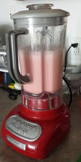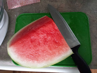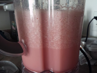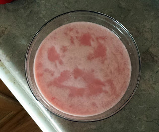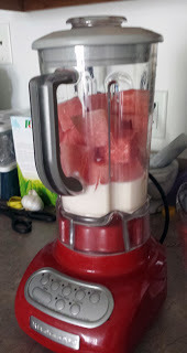 Step One: Cube the watermelon flesh and place in blender with milk. I chose to use 2%, though whole milk would probably have been more effective. I wouldn't use skim milk, as it would throw off the mouth feel; you want the final product to be a little creamy.