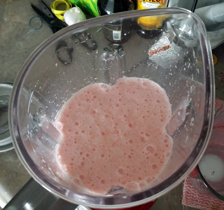 Step Two: Blend. I used the "liquefy" setting, though you could probably get away with puree. As you can see, the blended product is a little foamy, which leads us into Step Three.