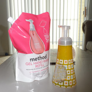 I'm a little obsessed with eco-friendly products and conservation, so two of my favorite product lines are Method and Seventh Generation. Method has a wide array of scents and colors, but 1 litre of gel hand wash costs the same amount as the foaming solution, and both are significantly costlier than, say, Softsoap. This presents a good place to cut a few corners.
