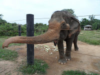 It seems that Thailand's sense of wildlife protection is pretty shoddy, as the government doesn't particularly care about the non-native species that many have taken on as pets. Not shown are a monkey shaped more like a chihuahua thanks to the tiny cage in which it was housed; a young male elephant resigned to a lifetime of celibacy as the rescued females are all old with bad backs that would not support being mounted (thank you, elephant-riding tourists and illegal logging industry); and a gibbon left on her lonesome after her mate and baby were taken on a government raid. The staff provided a very thorough tour and know each of the animals and how they were rescued. I met two lovely couples from England and Germany during lunch, and together we walked with one of the elephants, bribing it along with fruit, and gave it a standing shower. After a quick visit to the other elephants on the compound, along with a first-hand view of monkey feeding time, they left and I received the rest of the tour that I had missed from one of the long-term volunteers. Three hours later, I was back at the Holiday Inn Bangkok.