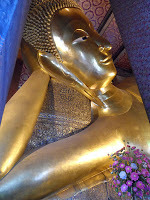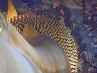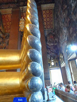 The reclining Buddha has to be the largest golden statute that I've ever seen. Even its toes were inlaid with mother of pearl! Guests had to put on green robes if their clothes revealed too much skin, and everyone had to take off their shoes to enter.