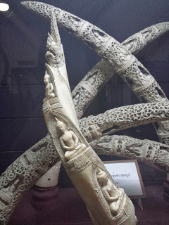 Moving into the Buddhist relics, I was caught between a rock and a hard place. On the one hand, I'm morally opposed to the use of elephant ivory for human purposes. On the other, one has to acknowledge the skill that went into carving out these tusks. I'm still slack-jawed looking at the pictures.