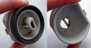 First off, the bottle fits well into a medium-sized hand (7.5 if we're talking hospital glove sizes). The silicone grip is comfortable, and the viewing window makes it easy to see how much water is left. The lid is rather cleverly designed, with a square top that facilitates gripping and a tight seal that prevents leaks. Bravo.