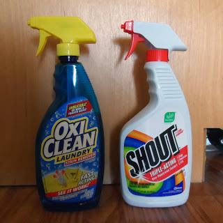 I suppose the conclusion to be drawn from this wholly unscientific process is that Shout is fine for fresh, "easy" stains, but for stubborn ones that have had time to settle in...Oxi Clean it is. On an unrelated note, I've found Tide pens to be more or less useless. Has anyone had a better result with that product?