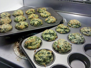 The compromise came in the form of a recipe for spinach and pesto muffins, courtesy of The Williams-Sonoma Baking Book Cookbook . Okay, so there's plenty of cheese in there, but there's also lots of green, leafy vegetables, and a fair chunk of the fat content comes from a mixture of canola and extra virgin olive oil. At least, that's how I'm justifying it.