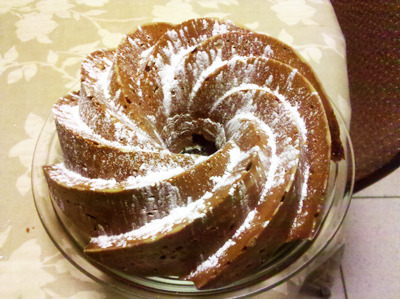 In the end, the smart woman opted for something useful. When the package arrived, I initially thought that it was one of the many Christmas gifts that I had ordered from Amazon in the ongoing effort to avoid holiday crowds. I opened it to discover the familiar Williams Sonoma wrapping paper and signature green bow. I eagerly lifted the box from its cardboard covering and peeled back the wrapper to discover a beautiful, nonstick, aluminum Nordic Ware bundt pan. It was immediately put into good use, as evidenced below.