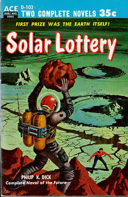 Първият издаден роман на Филип Дик е „Слънчева лотария" (Solar Lottery, 1955). Предполага се, че написан през 1954 г. Излязъл е през май 1955 г. в известната за времето си поредица на Ace Books – Double Ace, в чиито книги са били включвани по два романа на различни писатели (в същата поредица излизат и няколко от следващите романи на Филип Дик). „Слънчева лотария" е комбиниран с The Big Jump на Ли Брекет (долната корица е на оригиналното издание от 1955 г.). За това издание романът е бил редактиран от Дик под натиска на редакторите на издателството и е с дължина 131 стр. През 1959 г. романът излиза и в цялостния си вид, с дължина 188 стр. Във Великобритания произведението е издадено под заглавие World of Chance.