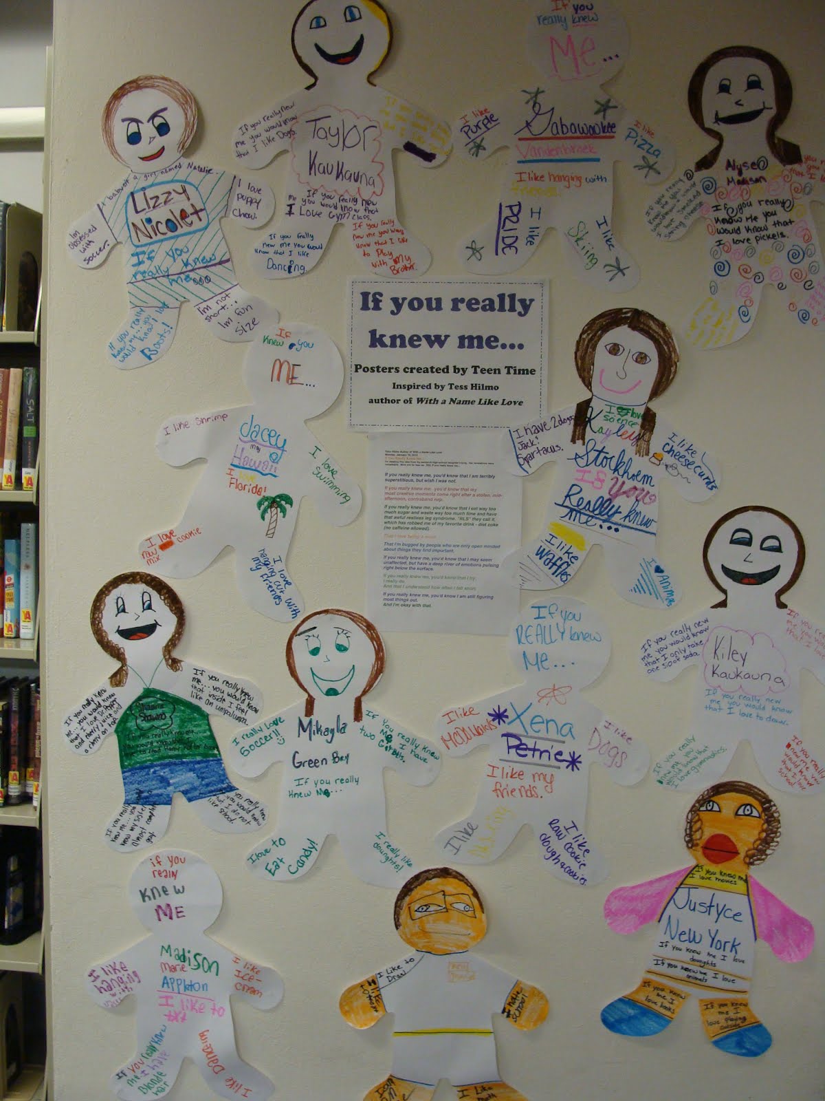 Then their amazing librarian Rose sent me this picture of it all. Each cut out is a teen and they have their If You Really Knew Me bits written on them.