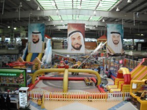 Sheik Zayed and sons watch over everything, including huge kid play area in a mall.