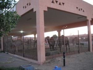 I better start off by describing the camel yard. All the guidebooks claimed it was the last of its kind and something we should not miss. So, after two days of Al Ain’s forts, mountain passes, and an amusement park (Hilli Fun City, oldest amusement park in the Gulf! Ride a roller coaster that’s almost as old as the UAE! Yeah!!), we drove through warehouse area after dodgy warehouse area at sunset, with KC determined to find this fabled tourist site.