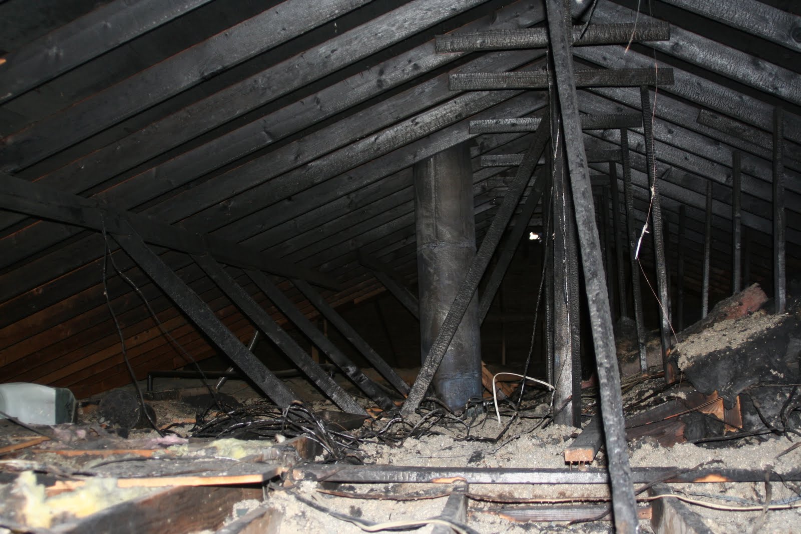 The firefighters were an amazing crew... managing to contain the fire to the attic (where it had started) and used a combo of water and foam to combat it. There was minimal damage to our personal property (they were able to lay tarps across our furniture etc - before parts of the ceiling collapsed). But... our house is toast. We are looking at a complete rebuild! We found out, 4 days after the fire, that wiring in a fan that exhausted hot air out of the attic and through the roof was the cause of the fire.