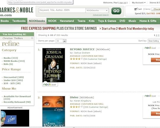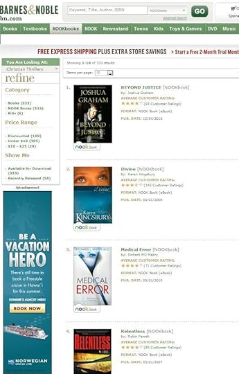 I'm happy to report that it's already risen up to the #9 bestselling legal thriller and #1 bestselling Christian thriller ebook on BN.com!