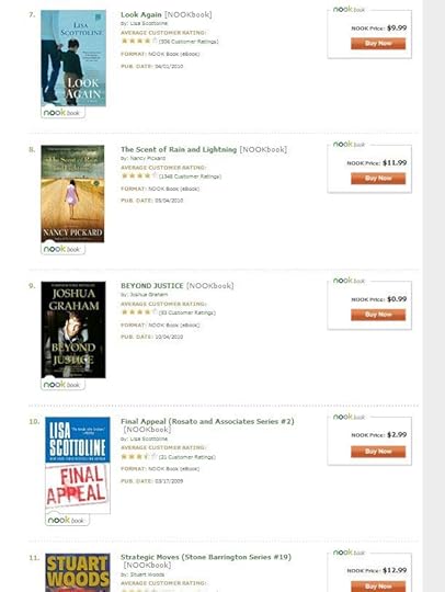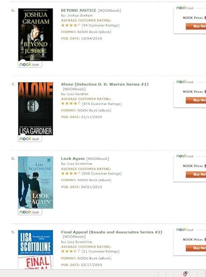 My Publisher knew when they had to reset the account they'd lost our sales ranking for BEYOND JUSTICE. At very end of the category lists it was difficult for readers to find it on Barnes & Noble. So the idea was to bring it back up to the front. In less than 24 hours BEYOND JUSTICE sky-rocketed from the 100,000′s sales ranking up to the mid-300′s, and even hit the top of a few bestseller category lists!
