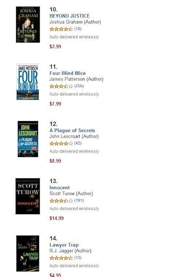 Wow, what a day! Beyond Justice hit the Top 10 bestsellers on Amazon.com for Kindle books! Topping the titles of James Patterson, John Lescroart, and Scott Turrow!