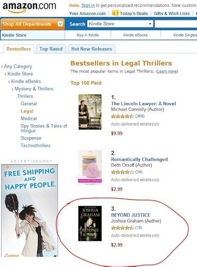 Today, as they featured BEYOND JUSTICE, my book rose up to the #3 BESTSELLING LEGAL THRILLER on Amazon.com!