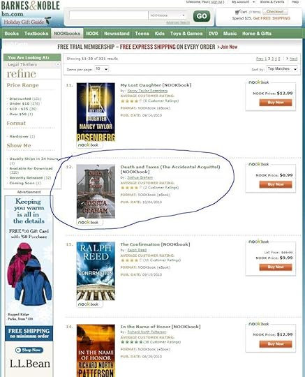 DEATH AND TAXES takes #11 on the Besteller list in legal thrillers.