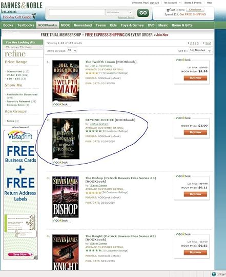 BEYOND JUSTICE remains on page 1 as #9 of B&N's bestselling legal thrillers