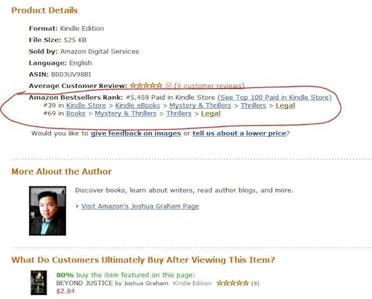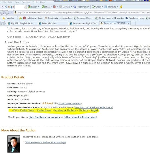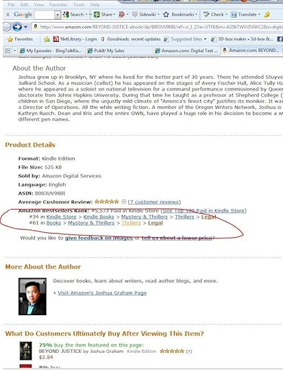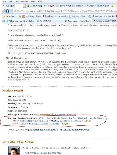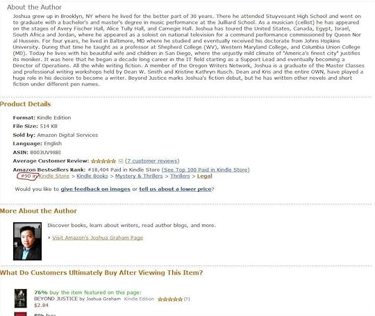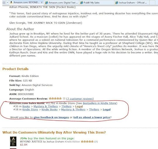 See the screen shots below. Had I been paying attention, I might have seen BEYOND JUSTICE rise up higher than #90, because the sales numbers were a lot stronger in the middle of the month than they had been on Friday, when I noticed it. I guess I need to pay attention!