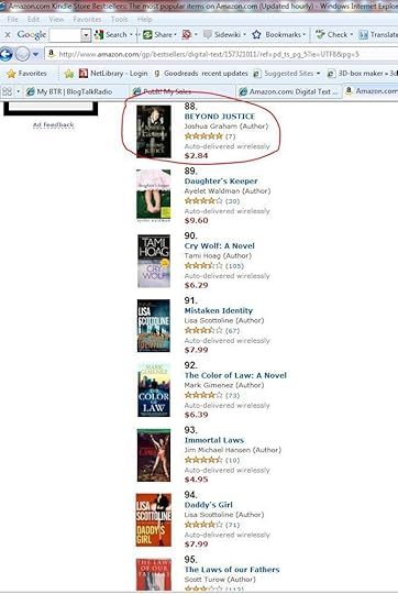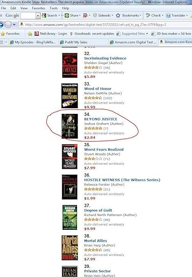 About an hour since my last report BEYOND JUSTICE jumped up the Amazon top 100 bestseller list and hit another one!