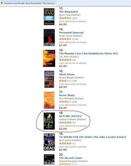 Last week BEYOND JUSTICE hit two Amazon Bestseller lists. I didn't get the screen capture in time but the highest it reached (that I was around to see) was #14 and #30.