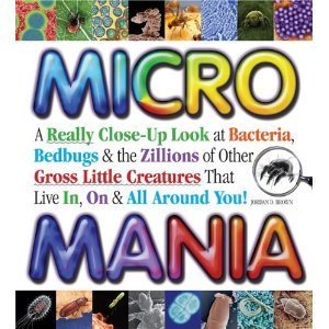 Micro Mania covers the world of bacteria, pests such as fleas and ticks, food pests like ants, roaches, beetles, and moths, along with kitchen bacteria and where they all live and reproduce. Then the information moves to the bedroom and bathroom, with dust mites, bed bugs, and algae. Plankton, krill, and thermophiles round out the mix of these mini creatures that live with us. The book reveals the amazing characteristics of these organisms and presents the information in a medium gross way that should appeal to this age.