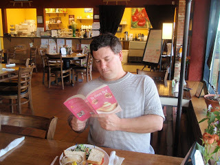 Below is a photograph of the serious-minded fool, aka me, immersed in egg salad on wheat and Lefkowitz's To Have Not . I'm washing it all down with sweet tea at The Starving Artist Cafe, a pleasant establishment across the wide road from Poor Richard's Booksellers in Easley, South Carolina.