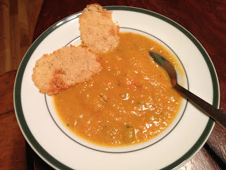 I know, it's very orange. And my fricos look kinda sloppy. But they tasted AMAZING. I'm already trying to think what else that I cook could be made all the better with a nice parm cracker or two on the side. The soup was delicious too--the small amount of chile and Bourbon came through powerfully and made for a spicy, rich, boozey dinner for a cold Sunday night.