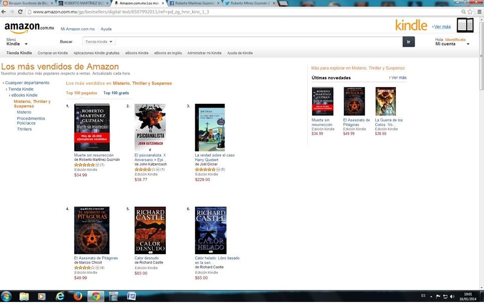 Una vez que acabé de escribirla y colgarla en Facebook, decidí darle un repaso, retocar algún capítulo, darle una corrección y subirla como ebook en Amazon, saliendo a la venta el 12 de junio de 2012.Los logros conseguidos desde ese día hasta hoy son innumerables:- Ha figurado en la lista de ebooks más vendidos del año en tres ocasiones- Ha estado dentro del Top100 de Amazon España casi 400 días y del de México casi 150.- Ha sido la primera novela independiente elegida por Amazon para incluirla en sus promociones.- Ha sido reseñada por más de 150 blogs literarios - Y cuenta con cientos de opiniones en distintos portales literarios. La gran mayoría, positivas.Pero dentro de estos, los que más ilusión me hicieron, fue cuando alcanzó el primer lugar en la ranking de ventas en España:
