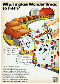 <!-- /* Font Definitions */ @font-face {font-family:Cambria; panose-1:2 4 5 3 5 4 6 3 2 4; mso-font-charset:0; mso-generic-font-family:auto; mso-font-pitch:variable; mso-font-signature:3 0 0 0 1 0;} /* Style Definitions */ p.MsoNormal, li.MsoNormal, div.MsoNormal {mso-style-parent:""; margin:0in; margin-bottom:.0001pt; mso-pagination:widow-orphan; font-size:12.0pt; font-family:"Times New Roman"; mso-ascii-font-family:Cambria; mso-ascii-theme-font:minor-latin; mso-fareast-font-family:Cambria; mso-fareast-theme-font:minor-latin; mso-hansi-font-family:Cambria; mso-hansi-theme-font:minor-latin; mso-bidi-font-family:"Times New Roman"; mso-bidi-theme-font:minor-bidi;} @page Section1 {size:8.5in 11.0in; margin:1.0in 1.25in 1.0in 1.25in; mso-header-margin:.5in; mso-footer-margin:.5in; mso-paper-source:0;} div.Section1 {page:Section1;} </style>--> <br /><div class="separator" style="clear: both; text-align: center;"><a href="http://2.bp.blogspot.com/-2FdO3U_8Z90..." imageanchor="1" style="clear: left; float: left; margin-bottom: 1em; margin-right: 1em;"><img border="0" height="320" src="http://2.bp.blogspot.com/-2FdO3U_8Z90..." width="226" /></a></div><div class="MsoNormal">With the recent headlines of Hostess going out of business, many people are wondering how a company so old, so ingrained in American pop culture could close up shop overnight. Well, it’s a sad tail of greed, mismanagement and indifference, but that’s not what this article is about.</div><div class="MsoNormal"><br /></div><div class="MsoNormal">This article is about losing things you love.</div><div class="MsoNormal"><br /></div><div class="MsoNormal">So many of us who have a soft spot for mid-20<sup>th</sup>century pop have had to endure icon after icon fall from grace, only to be replaced by plastic-y, cookie cutter crap and chain-restaurant-ish dullsville blobs of made-in-China neveau detritus. From the demolition of almost all of America’s grand Tiki restaurants, to the destruction of the great movie palaces; from the downfall of America’s greatest music to its bubblegum-pop hip hop noise; we’ve seen way too many of the things that helped make America the great country it is get plowed down and swept away to make room for cardboard casinos and mislabeled “healthy” vitamin waters.<span style="mso-spacerun: yes;">   </span></div><div class="MsoNormal"><br /></div><div class="MsoNormal">Hostess pies, Devil Dogs, and yes, Twinkies – although, let’s face it, they are crap too, have stood the test of time, and have been with us our entire lives. Personally, I’m not a big Twinkie fan. But I do enjoy a Devil Dog now and then (our wedding cake was made from them...long story, for another post) and like to splurge on a Hostess apple pie when I want my sugar count to soar to give my doctor a premature heart attack. </div><div class="MsoNormal"><br /></div><div class="MsoNormal">But there is one thing that I cannot live without.</div><div class="MsoNormal"><br /></div><div class="MsoNormal">Wonder Bread.</div><div class="MsoNormal"><br /></div><div class="MsoNormal">I know, I know, many of you will say it’s the nutritional equivalent of eating Elmer’s glue and White Out. I don’t care. It’s the only bread I can eat a PB&J on. And it’s because that’s what I’ve always had my PB&J on, from when I was a little kid in the 1970s...you know, back when bread was bread, and Moms bought Wonder Bread because it tasted good and had the fun polka dots on the bag.</div><div class="MsoNormal"><br /></div><div class="MsoNormal">With Hostess making headlines last week as they close the company, apparently shutting their doors forever and denying future generations of Twinkies and Devil Dogs, something occured to me:</div><div class="MsoNormal"><br /></div><div class="MsoNormal">I can’t imagine a world without <b>Wonder Bread.</b></div><div class="MsoNormal"><br /></div><div class="MsoNormal">The good news is, I probably won’t have to. In today’s society, there is a BIG difference between a successful <i>BRAND</i> and successful company. The company, run by a flock of who-the-hell-cares-as-long-as-our-bottom-line-stays-high investment firms, is worthless. The brand, however, is worth billions.</div><div class="MsoNormal"><br /></div><div class="MsoNormal">What I’m getting at is that just because Hostess the <i>company</i> goes out of business, it doesn’t mean Hostess the <i>brand</i> will go away.</div><div class="MsoNormal"><br /></div><div class="MsoNormal">Think about Monopoly, the game that’s been around since the 1930s. It was originally made by Parker Brothers games. Do you think Parker Bros. is still making Monopoly? Nope. Parker Brothers became part of General Mills, which merged it with Kenner, which was bought out by Tonka, which was in turn bought out by Hasbro. Still the same Monopoly, just a different company building it.</div><div class="MsoNormal"><br /></div><div class="MsoNormal">Same thing goes with a candy bar I really dig. I think it’s a Philly/Jersey area thing, or at least used to be, because few people I talk to in Florida ever heard of Goldenberg’s Peanut Chews. They disappeared about 10 years ago when a new company (Just Born) bought them out. They dropped the Goldenberg’s name, and sales fell. But they wised up...the brought the name back, and now I can buy Goldenberg’s Peanut Chews again, just like I did 30 years ago.</div><div class="MsoNormal"><br /></div><div class="MsoNormal">So will it be a world without Wonder Bread? I don’t think so. I have a feeling that great polka dot packaging and paste-like bread will be around for a long time. I’m pretty sure Devil Dogs and Twinkies will, too, possibly even with the name “Hostess” blazoned in red lettering across the top of the package. In a few years, will anyone remember there was a time when that “name” stood for a company that went out of business, and caused a blip on the news headlines of 2012? Probably not. 