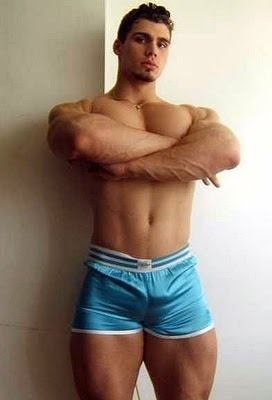 Okay. Honestly, this looks more like a "Hot Shot" but, though the guy is hot, the photo is a bit ordinary. What I'm posting it for is the shorts. I love them! Where can I find those shiny babies? Anyone know? They are definitely the best thing (things?) I've seen all day.