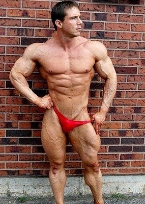 I know some people are turned off by the vascular look, but I dig it. This guy, with those awesome legs and the way he's barely keeping his package wrapped, makes me swoon...
