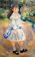 Girl With a Hoop (1885) by Pierre-Auguste Renoir"What makes you happy?"A smile brightens Millie's countenance. "Playing with my best friend, Jennifer Stanton. Her pa is the town preacher an' her folks are real nice. They always treat me like family. Pastor and Mrs. Stanton worry about Momma an' me, 'cause we don't always have money for nice things. But Momma takes real good care of me.""Doesn't your grandfather own the largest ranch around Prophecy? In fact, he owns most of the town. Why doesn't your mother ask him for help?"