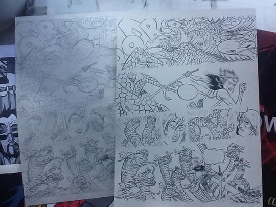 Os dejo aquí el proceso de trabajo de una de las páginas de la nueva novela gráfica en la que estoy trabajando -y que estoy a punto de terminar!- "Battling Boy: The Rise of Aurora West" book 01.