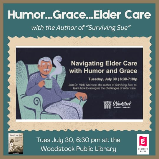 Thank you to the wonderful people who joined me this week at the Woodstock Public Library for the “Navigating Elder Care with Grace & Humor” event. Connecting with new friends about what matters most…swapping tips and secrets about how to live our best lives while often caring for others…makes me smile. It’s a potent reminder that writing about my life with my mom, Sue, and sharing my story of resilience helps to pull people together.