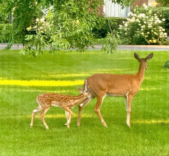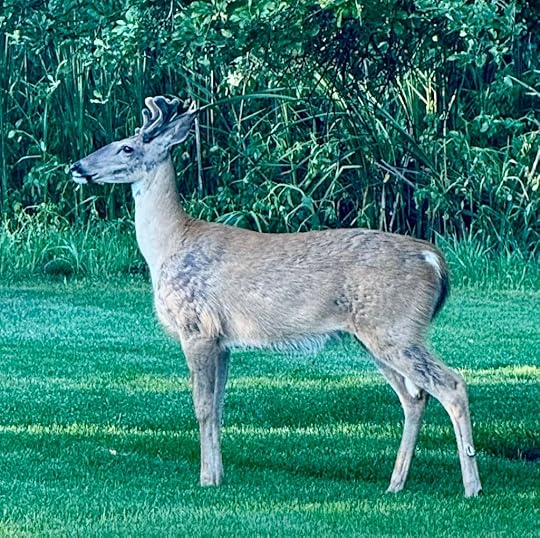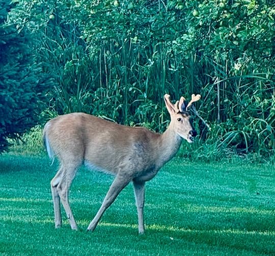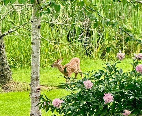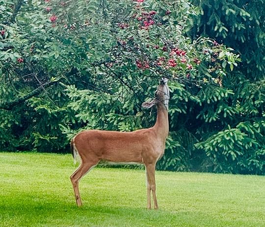 She glanced at me, just a few feet away and must’ve concluded I looked harmless, despite my wild morning hair and mismatched jammies. I sipped my tea, she frolicked and nibbled, only giving me a passing glance before she hopped off the deck.
