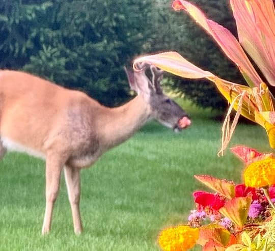 I know, I know. The deer are a menace. We have several neighbors and friends who decry the horrors of deer this time of year because of their infernal appetites. The nerve, the nerve. I get it…but I figure our landscaping effort, in the end, is for our visual enjoyment. It’s not our source of food and anyone who knows me knows I was born to feed people… animals. It gives me great joy.