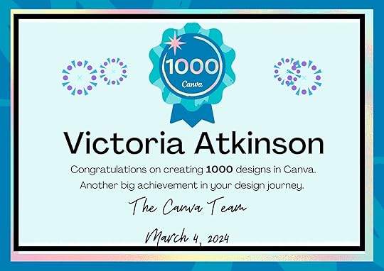 I don’t know how it happened. One thousand designs? I mean…I know I’ve been busy creating promo materials for “Surviving Sue” and posting on my personal blog – right here on Victoria Ponders and partnering with my writer friends on Sharing the Heart of the Matter but 1000 designs? Wow.