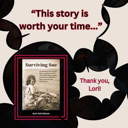 Do you know Lori Pohlman? The writer behind the enchanting blog, Lake Arrowhead Lady Writer? Lori wrote a generous review of “Surviving Sue” on March 8 and I must admit, in the not-quite two years since I shared my story with the world, I continue to be thrilled and delighted every time a reader has kind thoughts to share.