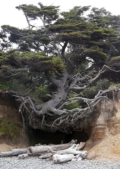 Kathy stood upon the beach, smiling up at the tree. It looked so strange there, set in such a precarious position over the hollow in the cliff wall. Anyone walking along this stretch of beach would think it was going to fall over and be swept into the ocean.