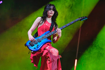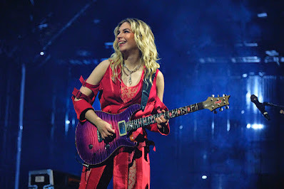 Una escalera al cieloVino entonces la que quizá fue la gran sorpresa de la noche. De pronto los reflectores iluminaron únicamente a Daniela. Sus hermanas habían abandonado el escenario. Estaba sola con su preciosa y flamante PRS. ¿Sería la misma guitarra que apenas unos días atrás le regalara Orianthi, la legendaria guitarrista australiana, instrumentista de Michael Jackson, Carlos Santana, Joe Satriani y Alice Cooper, entre otros, durante el concierto del 40 aniversario de la afamada marca? De ser así, ¿qué haría Dany con semejante joya?. Utilizarla de la mejor manera, con una obra maestra musical, un instrumental atmosférico, una escalera al cielo de toques progresivos y jazzísticos que enmudeció al Auditorio con un sentimiento a flor de piel, a flor de guitarra, y una delicadeza conmovedora. Fue un solo de cuatro minutos, con ecos de Al Dimeola y David Gilmour, que incluyó referencias (guiños para sus verdaderos seguidores) a los solos de antiguas composiciones de The Warning como (en ese orden) “Show Me The Light” (del álbum XXI Century Blood de 2017), “Free Falling” (del EP Escape the Mind de 2015) y “The End (Stars Always Seems to Fade)” (del disco Queen of the Murder Scene de 2018). Fue un momento majestuoso, mágico y misterioso que la mayor de las Villarreal terminó con una elegante y sutil caravana.