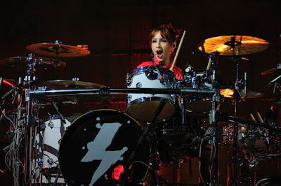 Terminada la canción, Las Wawas se retiraron y el intermedio continuó con el sketch del conserje, quien regresó para quitar del bombo la tapa de Las Wawas y dejar la de The Warning. Luego se subió a la batería, en apariencia para limpiarla, y al saber que nadie lo veía (salvo once mil personas en sus lugares) se atrevió a golpear (primero con timidez, luego con más descaro) los tambores (que retumbaron de manera impresionante). Ya en confianza y con la gente como su cómplice, se sentó de plano en el lugar de Paulina y se lució con algunos redobles que le fueron festejados. Feliz de la vida y en actitud cómica, se soltó la larga cabellera y se arrancó las mangas del uniforme para mostrar su musculatura y sus grandes habilidades instrumentales, ya que se trataba de Johnny Tuosto, el baterista del grupo estadounidense abridor: Holy Wars. Al final se quedó con un persistente golpe de bombo, los espectadores lo acompañaron con palmas y de pronto se escuchó una voz femenina que cantaba un “a-ha-ha a-ha-ha” que muchos reconocieron. El hipnotizante compás lento de la guitarra sonó también y Pau, Dany y Ale volvieron a escena nuevamente con sus atavíos rojos a la Keep Me Fed. “Consume” reventó en todo lo alto con Paulina como front woman (tal como hiciera con “Narcisista” en el Teatro Metropólitan hace dos años y medio) para otro de los grandes momentos de la noche.