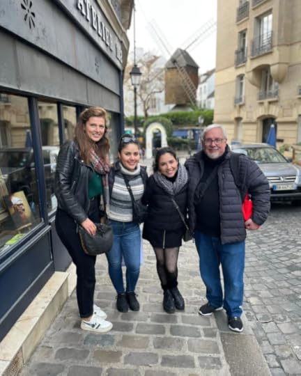 Hace hoy un año, con Mathilde, Pau y Máfer en una calle de Montmartre, durante una tarde parisina más que agradable. Séptimo día de mi viaje a París, 17 de octubre de 2023.