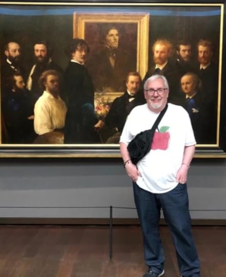 Frente al "Hommage à Delacroix" de Henri Fantin-Latour, cuadro de 1864, en el Museo d'Orsay, hoy hace un año; cuarto día de viaje en París, octubre 14 de 2023 (foto de Máfer González Tercero). Es de hacer notar que a la hora de hacer click, todos los señores detrás de mí voltearon a la cámara, entre ellos Charles Baudelaire y Édouard Manet.