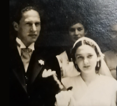 La boda de mis papás, el 5 de octubre de 1944, en la Iglesia de San Agustín, en el centro de Tlalpan. Hoy hace 80 años.