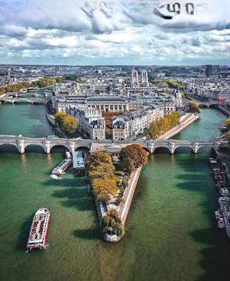 Una vista espléndida de la Île de la Cité, corazón de París, con el Pont Neuf, el jardín del Vert Galant, la estatua de Enrique IV y mi amada Place Dauphine en el primer plano. Al fondo, la catedral de Notre Dame, cuya reapertura se anuncia para este diciembre. Espero regresar el año próximo. Que así sea.