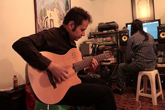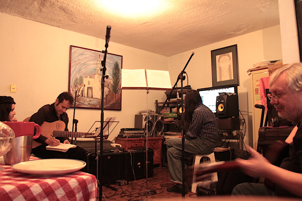 Cinco fotos de la sesión para grabar mi canción "Oye, Oye", con mis queridos y admirados amigos, la cantante Liliana Buneder y el guitarrista Alejandro Martínez Gil, en el estudio de Iris Bringas y Jehóva Villa Monroy, el pasado martes 15. Las fotos son de Iris.
